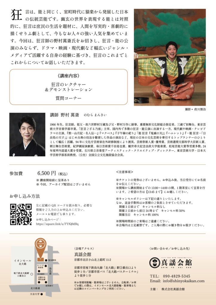 会場:真謡会館 地下能舞台(烏丸北大路北側西入る)