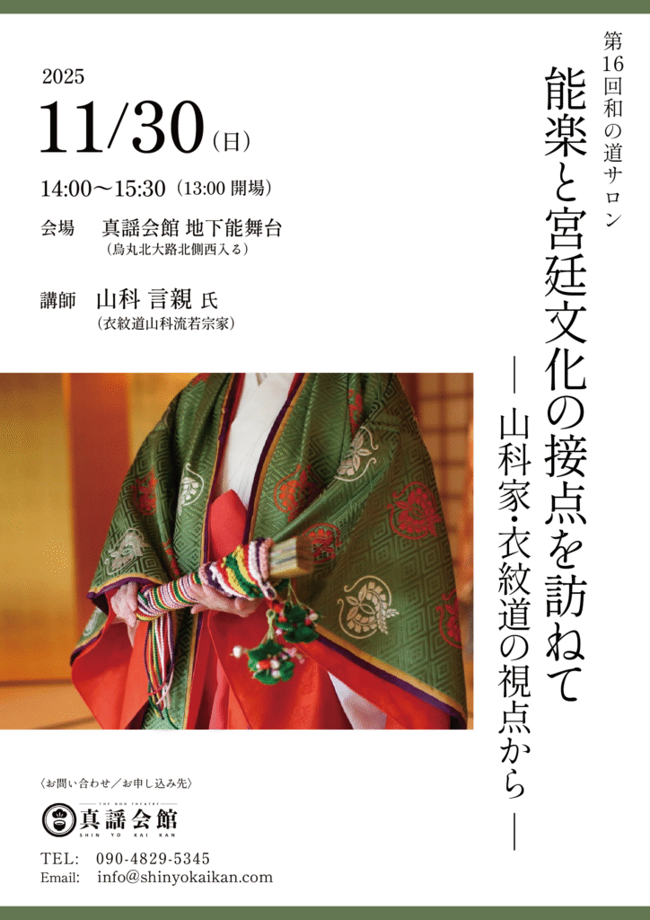 「能楽と宮廷文化の接点を訪ねて ー山科家•衣紋道の視点からー」です。